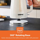 Geepas Electric Kettle GK38067UK-WT کتری برقی جیپاس مدل GK38067UK-WT با طراحی مدرن و کارآمد، راهحلی ایدهآل برای جوشاندن سریع آب در خانه یا محل کار است. این کتری با ظرفیت ۱.۷ لیتر و توان مصرفی ۲۲۰۰ وات، آب را در کمترین زمان آماده میکند و تجربهای امن و راحت برای شما فراهم میآورد. مشخصات محصول: • ظرفیت: ۱.۷ لیتر • توان مصرفی: ۱۸۵۰–۲۲۰۰ وات • جنس بدنه: پلاستیک مقاوم و سبک • سیستم خاموشی خودکار: بله (خاموش شدن اتوماتیک هنگام جوشیدن آب یا کم بودن آب) • پایه ۳۶۰ درجه: بله، برای سهولت استفاده و چرخش آزاد کتری • فیلتراسیون آ ب: دارای فیلتر قابل جدا شدن • المنت مخفی: بله، برای ایمنی و سهولت تمیزکاری • ابعاد: 22.8 × 22.8 × 17.4 سانتیمتر • سایر اقلام همراه: دفترچه راهنما ویژگیهای کلیدی: • ایمنی بالا: محافظت در برابر خشکجوشی و خاموشی خودکار • کاربری آسان: پایه ۳۶۰ درجه و طراحی بیسیم • سرعت بالا: توان مصرفی ۲۲۰۰ وات برای جوشاندن سریع آب • ظاهری زیبا: بدنه پلاستیکی سفید و طراحی مدرن کتری Geepas GK38067UK-WT انتخابی ایدهآل برای هر آشپزخانه است و با کیفیت ساخت بالا، دوام و راحتی استفاده را تضمین میکند.