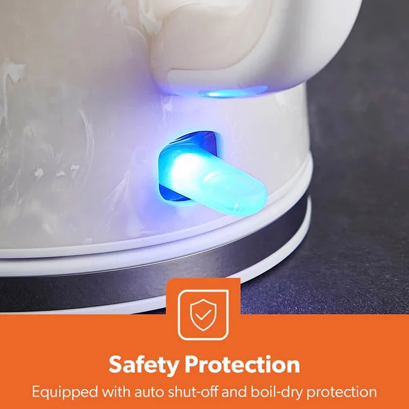 Geepas Electric Kettle GK38067UK-WT کتری برقی جیپاس مدل GK38067UK-WT با طراحی مدرن و کارآمد، راهحلی ایدهآل برای جوشاندن سریع آب در خانه یا محل کار است. این کتری با ظرفیت ۱.۷ لیتر و توان مصرفی ۲۲۰۰ وات، آب را در کمترین زمان آماده میکند و تجربهای امن و راحت برای شما فراهم میآورد. مشخصات محصول: • ظرفیت: ۱.۷ لیتر • توان مصرفی: ۱۸۵۰–۲۲۰۰ وات • جنس بدنه: پلاستیک مقاوم و سبک • سیستم خاموشی خودکار: بله (خاموش شدن اتوماتیک هنگام جوشیدن آب یا کم بودن آب) • پایه ۳۶۰ درجه: بله، برای سهولت استفاده و چرخش آزاد کتری • فیلتراسیون آ ب: دارای فیلتر قابل جدا شدن • المنت مخفی: بله، برای ایمنی و سهولت تمیزکاری • ابعاد: 22.8 × 22.8 × 17.4 سانتیمتر • سایر اقلام همراه: دفترچه راهنما ویژگیهای کلیدی: • ایمنی بالا: محافظت در برابر خشکجوشی و خاموشی خودکار • کاربری آسان: پایه ۳۶۰ درجه و طراحی بیسیم • سرعت بالا: توان مصرفی ۲۲۰۰ وات برای جوشاندن سریع آب • ظاهری زیبا: بدنه پلاستیکی سفید و طراحی مدرن کتری Geepas GK38067UK-WT انتخابی ایدهآل برای هر آشپزخانه است و با کیفیت ساخت بالا، دوام و راحتی استفاده را تضمین میکند.