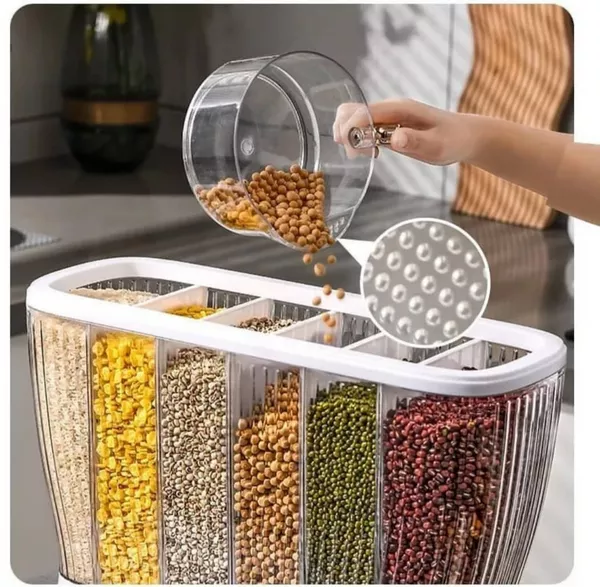 مجموعه شامل 6 تا 10 ظرف شفاف با دربهای مهر و موم شده است که از نفوذ رطوبت و هوا جلوگیری کرده و تازگی مواد غذایی را برای مدت طولانی حفظ میکند. طراحی ستونی و قابل تنظیم این جا حبوباتی، امکان استفاده بهینه از فضای آشپزخانه را فراهم میکند و پایه مقاوم آن ثبات کامل مجموعه را تضمین میکند.