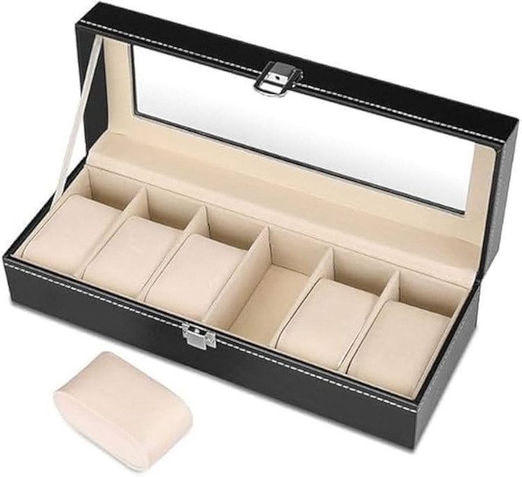 این محصول دارای ۶ خانه مجزا و استاندارد است که برای تمامی ساعتها – چه مردانه و چه زنانه – مناسب بوده و با بالشتکهای نرم و جداشونده امکان قرارگیری هر ساعت را بدون تغییر فرم بند و با ثبات کامل فراهم میکند.