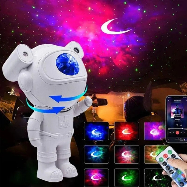 چراغ خواب فضانوردی مدل کهکشانی ایستاده اسپیکردار (Astronaut Projector Light) چراغ خواب و پروژکتور فضانوردی مدل کهکشانی، یکی از خاصترین محصولات دکوراتیو و نورپردازی مدرن است که با طراحی جذاب و خلاقانهی خود، فضایی رؤیایی و آرامشبخش را در هر محیطی به وجود میآورد. این چراغ با الهام از دنیای فضا و کهکشانها ساخته شده و با تابش نورهای رنگارنگ و متحرک، تصویری از آسمان پرستاره و کهکشانهای زیبا را روی دیوار یا سقف اتاق شما به نمایش میگذارد. بدنهی این چراغ به شکل یک فضانورد ایستاده طراحی شده که جذابیت ویژهای به دکور اتاق میدهد و علاوه بر جنبهی کاربردی، بهعنوان یک آیتم تزئینی مدرن و فانتزی نیز شناخته میشود. وجود اسپیکر بلوتوث داخلی در این مدل، امکان پخش موسیقی را فراهم کرده و تجربهی آرامش در نور و صدا را بهصورت همزمان برای شما رقم میزند. از ویژگیهای کاربردی این دستگاه میتوان به ریموت کنترل چندمنظوره برای تنظیم شدت نور، انتخاب رنگها، حالتهای مختلف پخش نور (ثابت، چرخان، یا ترکیبی) و تایمر خودکار خاموشی اشاره کرد. به این ترتیب میتوانید فضای اتاق را مطابق با حالوهوای خود تنظیم کنید — چه برای خواب، چه برای استراحت، مطالعه یا مهمانیهای کوچک. چراغ خواب فضانوردی کهکشانی، با ابعاد مناسب و طراحی مدرن خود، برای اتاق خواب کودکان و نوجوانان، اتاق نشیمن، دفتر کار یا حتی هدیه دادن گزینهای فوقالعاده است. نور ملایم و رنگارنگ آن، حس آرامش و خیالپردازی را در فضا پخش میکند و محیطی جادویی و رؤیایی میسازد.