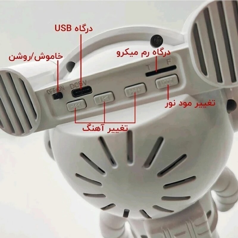 چراغ خواب فضانوردی مدل کهکشانی ایستاده اسپیکردار (Astronaut Projector Light) چراغ خواب و پروژکتور فضانوردی مدل کهکشانی، یکی از خاصترین محصولات دکوراتیو و نورپردازی مدرن است که با طراحی جذاب و خلاقانهی خود، فضایی رؤیایی و آرامشبخش را در هر محیطی به وجود میآورد. این چراغ با الهام از دنیای فضا و کهکشانها ساخته شده و با تابش نورهای رنگارنگ و متحرک، تصویری از آسمان پرستاره و کهکشانهای زیبا را روی دیوار یا سقف اتاق شما به نمایش میگذارد. بدنهی این چراغ به شکل یک فضانورد ایستاده طراحی شده که جذابیت ویژهای به دکور اتاق میدهد و علاوه بر جنبهی کاربردی، بهعنوان یک آیتم تزئینی مدرن و فانتزی نیز شناخته میشود. وجود اسپیکر بلوتوث داخلی در این مدل، امکان پخش موسیقی را فراهم کرده و تجربهی آرامش در نور و صدا را بهصورت همزمان برای شما رقم میزند. از ویژگیهای کاربردی این دستگاه میتوان به ریموت کنترل چندمنظوره برای تنظیم شدت نور، انتخاب رنگها، حالتهای مختلف پخش نور (ثابت، چرخان، یا ترکیبی) و تایمر خودکار خاموشی اشاره کرد. به این ترتیب میتوانید فضای اتاق را مطابق با حالوهوای خود تنظیم کنید — چه برای خواب، چه برای استراحت، مطالعه یا مهمانیهای کوچک. چراغ خواب فضانوردی کهکشانی، با ابعاد مناسب و طراحی مدرن خود، برای اتاق خواب کودکان و نوجوانان، اتاق نشیمن، دفتر کار یا حتی هدیه دادن گزینهای فوقالعاده است. نور ملایم و رنگارنگ آن، حس آرامش و خیالپردازی را در فضا پخش میکند و محیطی جادویی و رؤیایی میسازد.